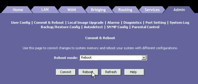 Clique na opção Commit & Reboot.