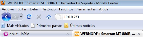 Na barra de endereços do navegador digite: 10.0.0.253 e pressione a tecla ENTER. Abrirá uma caixa de texto