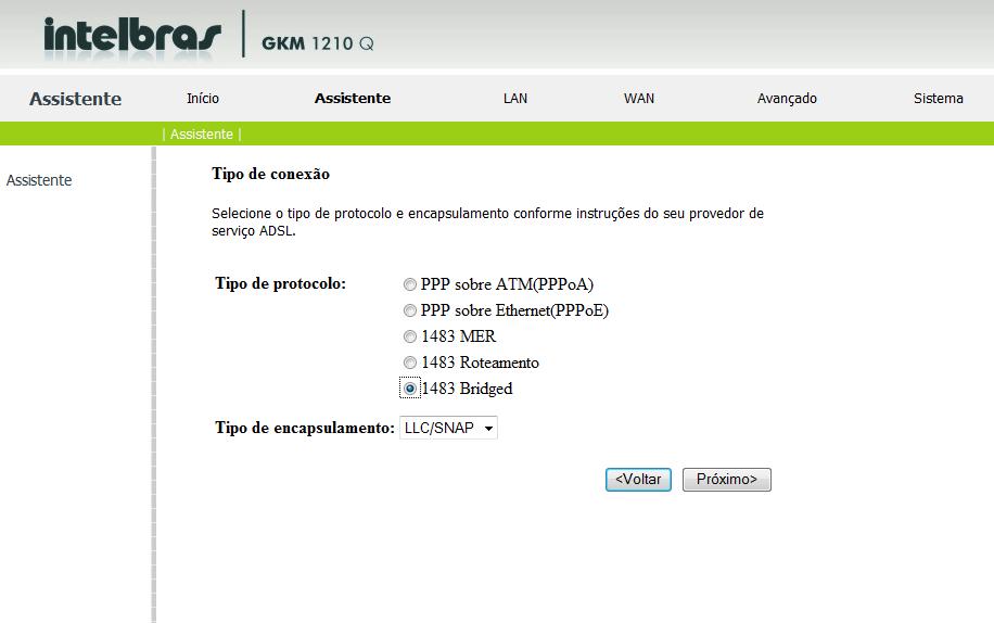 Em Tipo de encapsulamento: selecione LLC/SNAP