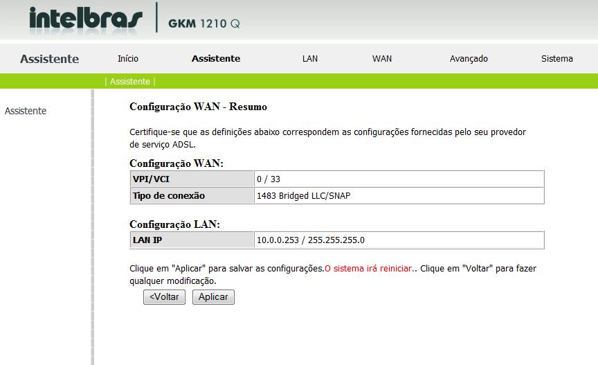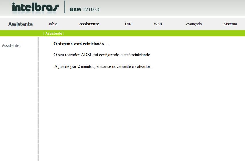 7.Pronto! Agora é só aguardar 2 minutos enquanto o modem é reinicializado com as novas configurações.